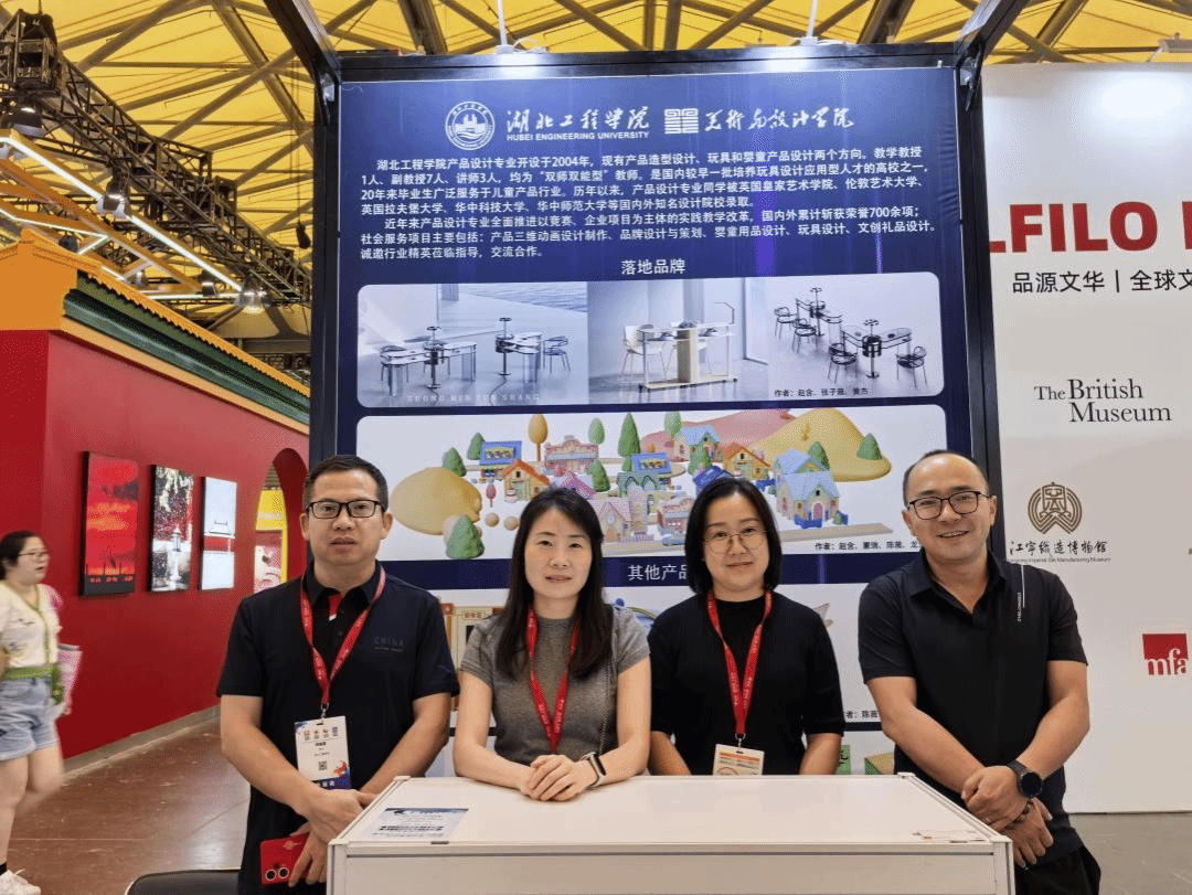 由中国玩具和婴童用品协会(简称中国玩协)主办的第二十三届CTE中国玩具展&潮玩展、第十八届CLE中国授权展、CKE中国婴童用品展和CPE中国幼教展(简称中国玩协四展)在上海新国际博览中心盛大开幕。本届展会以“共享跨界资源、引领创新趋势”为主题,汇聚全球41个国家和地区、30大集群化产区的2629家展商,携5426个品牌、超2600个全球正版IP集中亮相,全方位展现全产业链的领先成果,成为引领全球行业趋势的风向标。为深化我校美术与设计学院2026版人才培养方案和教学大纲的修订,对接产业人材培养需求,美术与设计学院产品设计系系主任、中国玩协理事赵含副教授,美术与设计学院文创产品设计中心主任师俊英副教授,骨干教师熊杨婷、龚怡慧副教授,美术与设计学院M202产品实训室团队成员学生代表朱雨林、陈薇、龙云彪、胡奇翰共八人组团参加了此次展览。