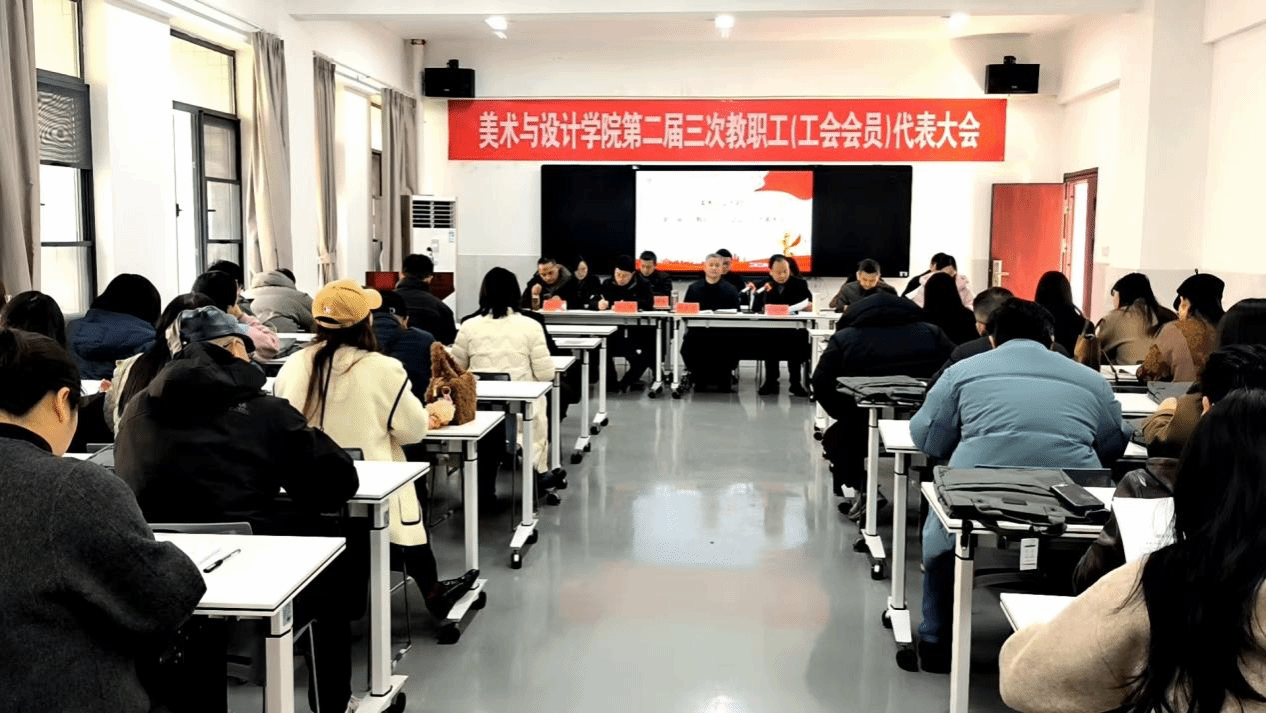 3月4日下午,美术与设计学院第二届三次教职工(工会会员)代表大会在学院三楼会议室胜利召开。大会在庄严的国歌声中拉开帷幕,全体正式代表、列席人员齐聚一堂,共商学院发展大计。预备会、开幕会由院党委书记左建桥主持。
