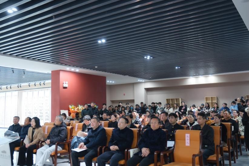 四位青年校友艺术家均曾求学于春晖湖畔,受教于李波老师,始终坚守传统艺术正脉,形成鲜明风格,在各自领域成绩显著。参展校友代表崔明东、刘文进先后发言,深情回望在母校的求学岁月。各位领导嘉宾先后发表讲话,对展览给予高度评价。湖北工程学院党委常委、副校长郑俊郑重宣布展览开幕。本次展览不仅是湖北工程学院艺术教育成果的集中呈现,更是学校推动美育工作、传承优秀传统文化、服务地方文化建设的务实举措,为传统书画印艺术的当代传承与发展注入了青年活力,也让更多人感受到中华优秀传统文化在新时代的生生不息。