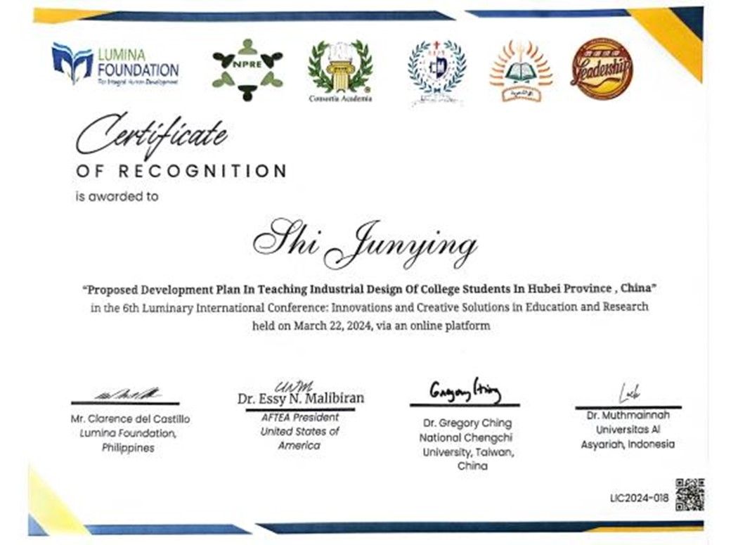 研究方向:文创产品设计、可持续产品设计等。 2006-2009年毕业于景德镇陶瓷大学,获设计艺术学硕士学位; 2022-2024年毕业于Philippine Christian University获博士学位; 社会兼职:中国设计师协会会员;中国工业设计师协会会员;湖北省孝感市美术家协会成员;曾任全菲中国留学生学者联合会文体部部长;